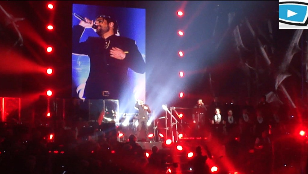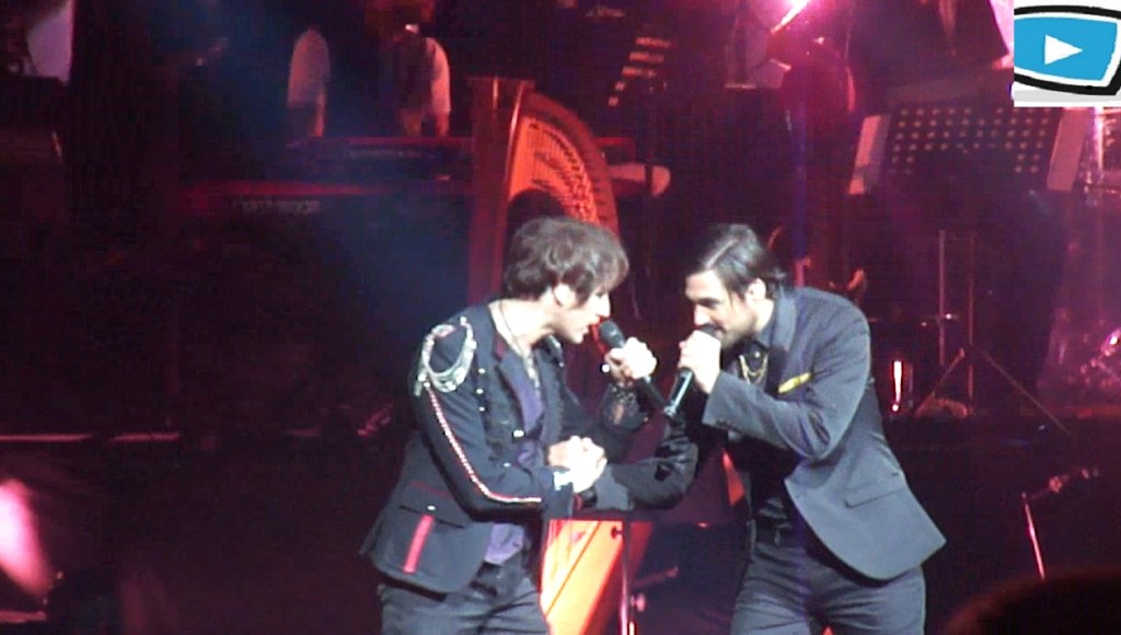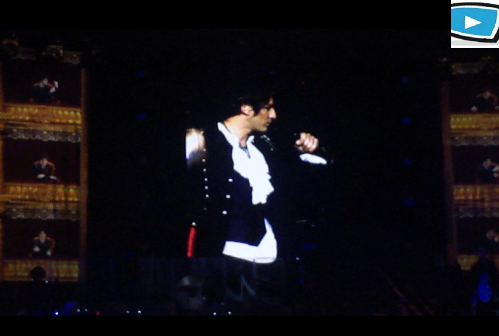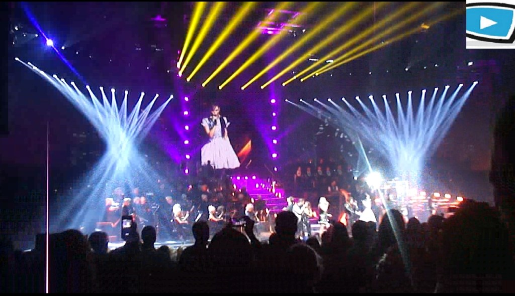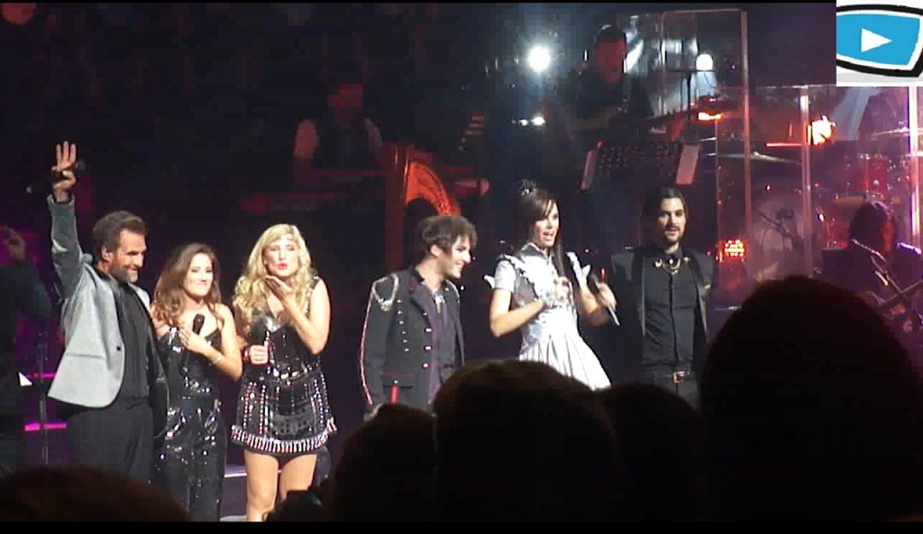 Ce vendredi soir, nous retrouvons donc Mikelangelo Loconte, Florent Mothe, Maeva Meline, Diane Dassigny, Melissa Mars et Solal au Palais des Sports. Tout d’abord les 60 musiciens et choristes s’installent et commencent à jouer, et l’on se rend vite compte que le son est très impressionnant. Les chansons s’enchaînent dans l’ordre du spectacle sans transition, sans doute pour mettre l’accent sur les superbes arrangements musicaux, ainsi que les jeux de lumières qui nous replongent dans l’ambiance « Mozartienne ». Dans le premier acte, on retrouve avec plaisir les chansons les plus connues comme « Tatoue-moi » et l’interprétation inoubliable de Mikelangelo Loconte qui reprend avec plaisir son rôle de Mozart ; ou encore « J’accuse mon père » chanté par Solal. C’est aussi l’occasion de découvrir des nouvelles chansons qui étaient présentes dans l’album intégral mais pas dans le spectacle, comme « Quand le rideau tombe ». La troupe de chanteurs se retrouve avec un bonheur évident. Ré-interpréter ces chansons 5 ans après, là où tout a commencé, c’est sans doute un moment très fort pour eux ; et le public est au rendez-vous.