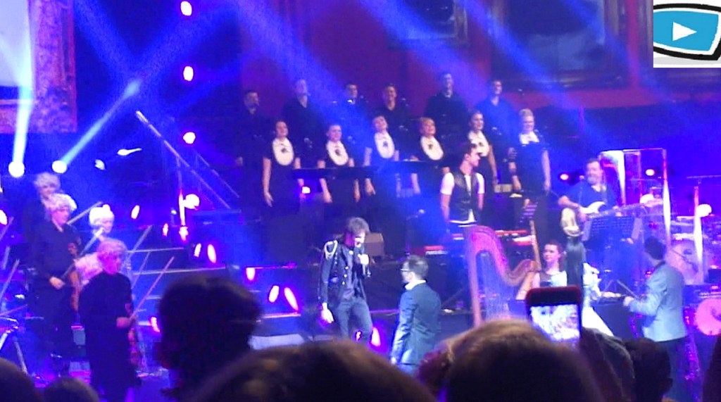 Le deuxième acte monte en puissance aussi bien au niveau de l’émotion que des arrangements. On retrouve le tube « L’Assassymphonie » interprété par Florent Mothe, mais aussi par exemple un arrangement rock impressionnant sur l’inédit « Le Carnivore », avec de très bons riffs de guitare ; il y a également des duos inédits comme entre Mikelangelo Loconte et Melissa Mars sur « Je danse avec les dieux ». Il y a aussi toujours les extraits originaux des compositions de W.A. Mozart, comme ce « Lacrimosa » magnifique, interprété par l’une des choristes de l’Opéra de Kiev. Ce soir, le titre « Mozart, L’Opéra Rock » a pris son sens plus que jamais ! On retrouve une complicité émouvante entre Mikelangelo et Florent sur « Vivre à en crever », puis déjà c’est le final… Le public est debout et acclame la troupe. Vient ensuite un moment touchant car les 2 producteurs russes du spectacle montent sur scène pour offrir une guitare à Maeva Méline, très émue. Enfin, nous reprenons tous ensemble avec plaisir les tubes « C’est bientôt la fin », « L’Assassymphonie » et « Tatoue-moi ». C’est déjà l’heure de dire au revoir à la troupe pour les laisser filer sur les routes de France, Suisse et Belgique… en effet cette version symphonique, qui a largement tenu ses promesses, entame une tournée !