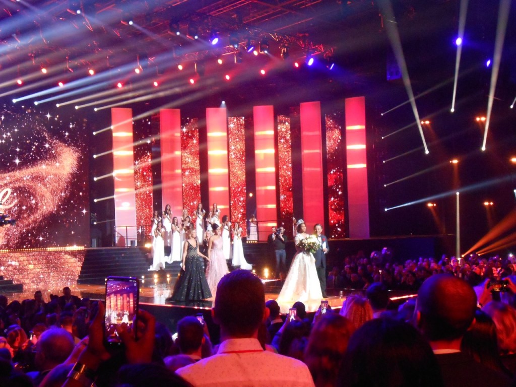 Dès 21h, Robbie Williams lance le show avec son tube « Rock DJ » dans une ambiance incroyable. Jean-Pierre Foucault arrive sur scène, fier de présenter la cérémonie depuis Marseille, sur ses terres. Les Miss nous ont fait voyager avec des tableaux grandioses de l’Angleterre à l’Afrique en passant par l’Espagne, le Japon ou encore la Russie. Très émue à l’heure de rendre son écharpe, Vaimalama Chaves, Miss France 2019 nous a offert un tableau dédié aux îles.