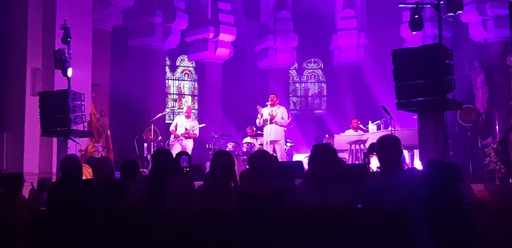 Patrick Fiori était en concert à Marseille dans un lieu plutôt original : la basilique du sacré cœur. Sa tournée « la plus rock’n’roll » comme il le dit. Une arrivée étonnante depuis le fond de l’église, l’artiste a salué son public pour rejoindre ses musiciens tout de blanc vêtu. Patrick Fiori était heureux de jouer dans sa ville Marseille où c’est toujours spécial pour lui. L’artiste a mis l’ambiance dans ce lieu atypique avec un public réceptif. Il a fait raisonner ses plus grands succès comme « Belle », « Que tu reviennes », « Les gens qu’on aime », « J’y vais », « Je sais où aller » avant un final rempli d’émotions sur « A la vie ». L’artiste s’est adressé à son public dans cette ambiance intimiste entre deux chansons pour raconter son histoire.