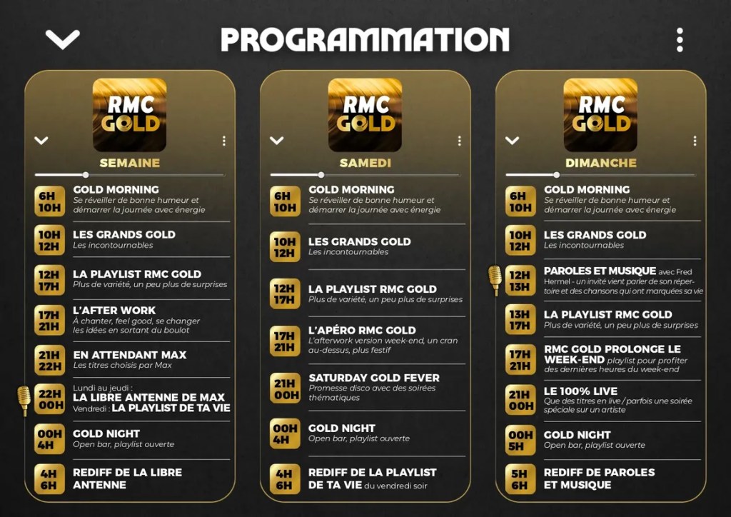 RMC Gold sera disponible sur l’application et le site de RMC, ainsi que sur plusieurs plateformes de streaming comme Radio Player, Apple et TuneIn. L’objectif est de permettre aux auditeurs de profiter de leur musique préférée à tout moment, que ce soit sur smartphone, ordinateur ou enceinte connectée.