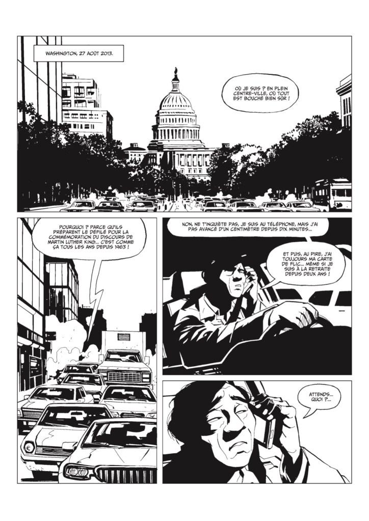 Une intrigue sombre ancrée dans l’histoire contemporaine LF Bollée et Boris Beuzelin livrent avec Black Gospel un récit noir et tendu, qui puise son inspiration dans les grands classiques du polar américain. Le roman graphique se déroule sur fond de commémoration du discours « I have a dream » prononcé par Martin Luther King en 1963. Vingt ans plus tard, à l’été 1983, deux jeunes femmes sont retrouvées assassinées à New York, ravivant les peurs d’un tueur en série.