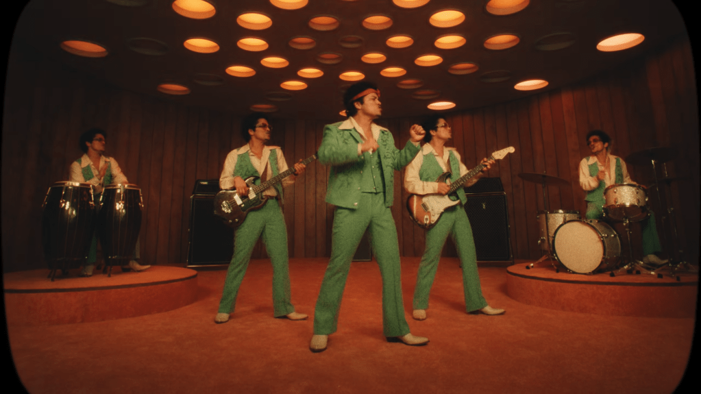Grâce à un travail précis sur les effets visuels, le clip présente une multitude de versions de Bruno Mars évoluant dans une même scène. Cette mise en abyme souligne sa polyvalence artistique et son sens du spectacle. Chorégraphies millimétrées, éclairages kaléidoscopiques et ambiance festive renforcent l’idée d’un retour placé sous le signe de la célébration et de la maîtrise scénique.