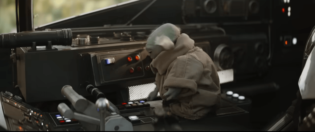 Le teaser met clairement en avant la relation qui a fait le succès de la série. On y retrouve Grogu dans un moment de légèreté, appuyant machinalement sur les commandes de leur nouveau vaisseau, tandis que des chasseurs rebelles traversent un ciel embrasé par le soleil couchant. Un droïde de type R2 apparaît brièvement, clin d’œil assumé à l’héritage de la saga et signal fort adressé aux fans historiques.